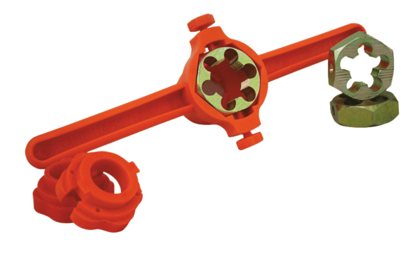 TEST: COJINETE DE ACERO AL CARBONO TEMPLADO. RESISTENTE. LIVIANA Y PRĂCTICA.PERMITE EL ROSCADO DE 3 MEDIDAS DISTINTAS SIN CAMBIAR COJINETES. 1/2", 3/4", 1"