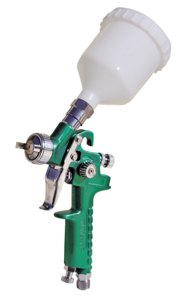 Alto volumen. Baja presi贸n. Ahorra pintura y preserva el medio ambiente. Eficiencia de transferencia superior al 75%. Evita exceso de niebla. Resiste pintura de base acuosa y a base de solvente.